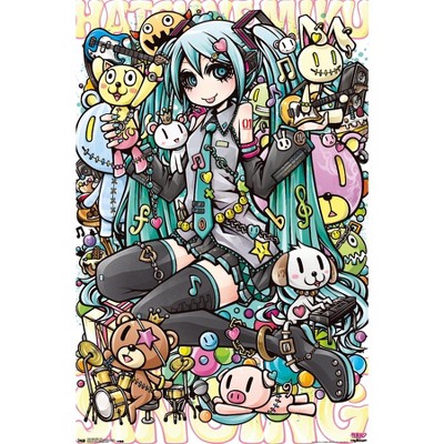 Trends International Hatsune Miku - Floral Fantasy Unframed Wall Poster Print Clear Push Pins Bundle 14.725" x 22.375"