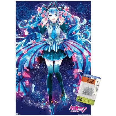 Trends International Hatsune Miku - Skirt Unframed Wall Poster Print Clear Push Pins Bundle 14.725" x 22.375"