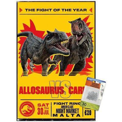Trends International Jurassic World: Dominion - Allosaurus Vs Carno Unframed Wall Poster Print Clear Push Pins Bundle 14.725" x 22.375"