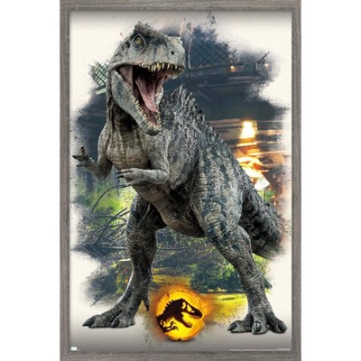 Trends International Jurassic World: Dominion - Giga Vs T. Rex Framed Wall Poster Prints White Framed Version 14.725" x 22.375"