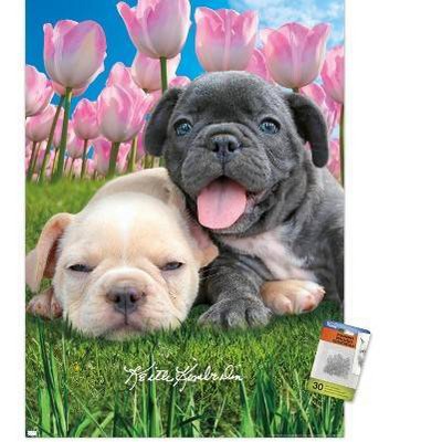 Trends International Keith Kimberlin - Bulldog Puppies Unframed Wall Poster Print Clear Push Pins Bundle 22.375" x 34"