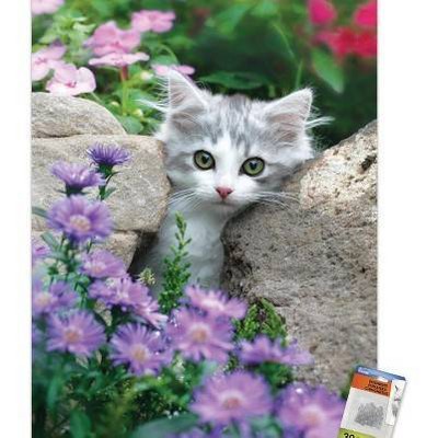 Trends International Keith Kimberlin - Kitten - Stones and Flowers Unframed Wall Poster Print White Mounts Bundle 22.375" x 34"