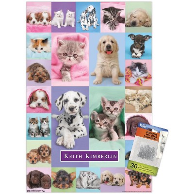 Trends International Keith Kimberlin - Puppies and Kittens Collage Unframed Wall Poster Print Clear Push Pins Bundle 14.725" x 22.375"
