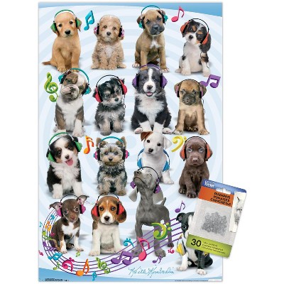 Trends International Keith Kimberlin - Puppies - Cupcakes Unframed Wall Poster Print Clear Push Pins Bundle 14.725" x 22.375"