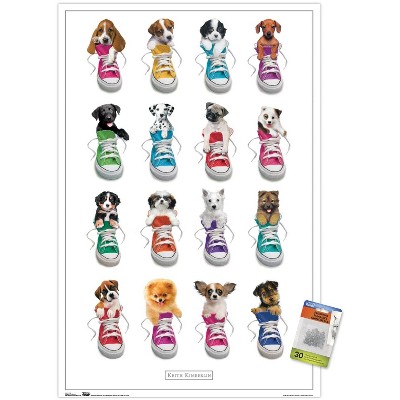 Trends International Keith Kimberlin - Puppies with Butterfly Wings Unframed Wall Poster Print Clear Push Pins Bundle 22.375" x 34"