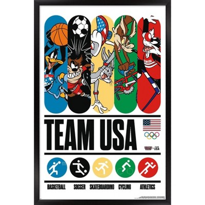 Trends International Looney Tunes x Team USA - Surfing Framed Wall Poster Prints Black Framed Version 22.375" x 34"