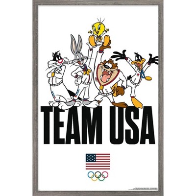 Trends International Looney Tunes x Team USA - Track and Field Framed Wall Poster Prints Barnwood Framed Version 14.725" x 22.375"