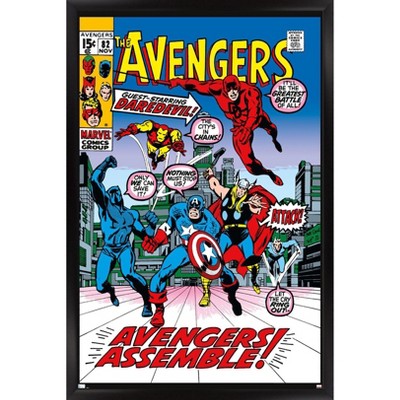 Trends International Marvel Avengers Comic - #1 Framed Wall Poster Prints Barnwood Framed Version 22.375" x 34"