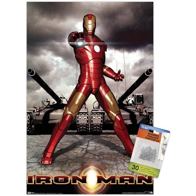 Trends International Marvel Iron Man Comic - Shape of a Hero Unframed Wall Poster Print Clear Push Pins Bundle 14.725" x 22.375"