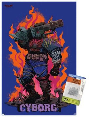 Trends International Marvel Spider-Man: Across the Spider-Verse-Cyborg Framed Wall Poster Prints Mahogany Framed Version 14.725" x 22.375"