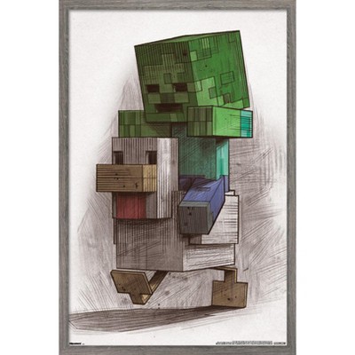 Trends International Minecraft: Metro Art - Chicken Jockey Framed Wall Poster Prints Barnwood Framed Version 22.375" x 34"