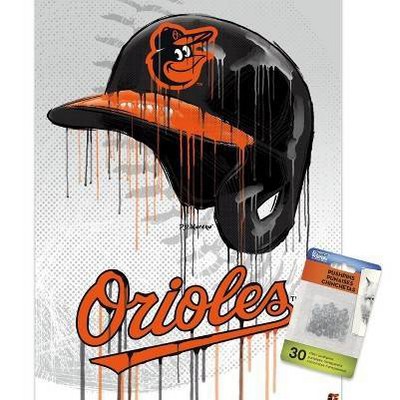 Trends International MLB Baltimore Orioles - Drip Helmet 22 Unframed Wall Poster Print Clear Push Pins Bundle 14.725" x 22.375"