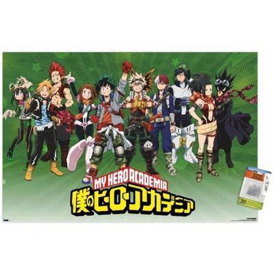 Trends International My Hero Academia: Season 4 - Group Unframed Wall Poster Print Clear Push Pins Bundle 22.375" x 34"