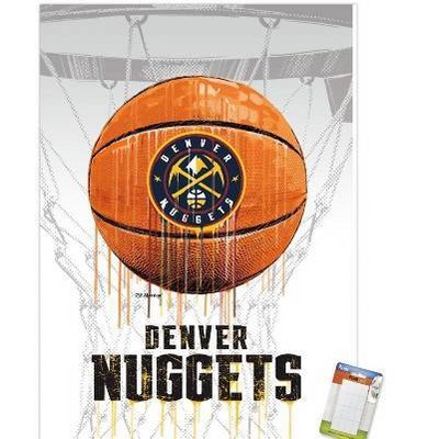 Trends International NBA Denver Nuggets - Drip Basketball 21 Unframed Wall Poster Print Clear Push Pins Bundle 22.375" x 34"