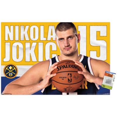 Trends International NBA Denver Nuggets - Nikola Jokic 19 Unframed Wall Poster Print Clear Push Pins Bundle 14.725" x 22.375"