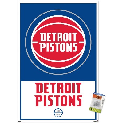 Trends International NBA Detroit Pistons - Drip Basketball 21 Unframed Wall Poster Print Clear Push Pins Bundle 22.375" x 34"