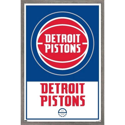 Trends International NBA Detroit Pistons - Maximalist Logo 23 Framed Wall Poster Prints Barnwood Framed Version 14.725" x 22.375"