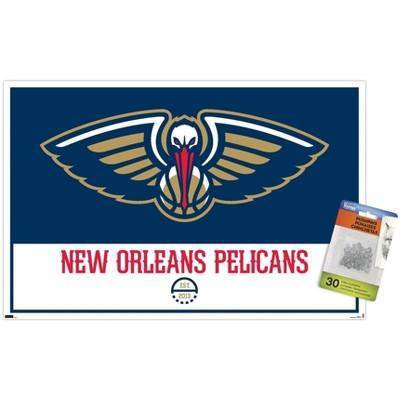 Trends International NBA New Orleans Pelicans - Logo 21 Unframed Wall Poster Print Clear Push Pins Bundle 14.725" x 22.375"