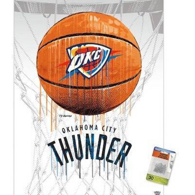 Trends International NBA Oklahoma City Thunder - Drip Basketball 21 Unframed Wall Poster Print Clear Push Pins Bundle 22.375" x 34"