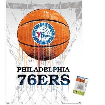Trends International NBA Philadelphia 76ers - Drip Ball Unframed Wall Poster Print White Mounts Bundle 22.375" x 34"
