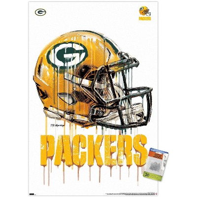 Trends International NFL Green Bay Packers - Drip Helmet 20 Unframed Wall Poster Print Clear Push Pins Bundle 22.375" x 34"