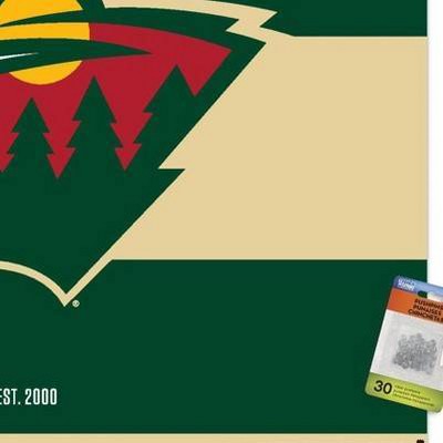 Trends International NHL Minnesota Wild - Logo 21 Unframed Wall Poster Print Clear Push Pins Bundle 22.375" x 34"