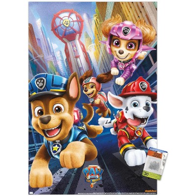 Trends International Nickelodeon Paw Patrol Movie - Big City Unframed Wall Poster Print Clear Push Pins Bundle 22.375" x 34"