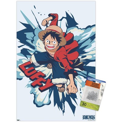 Trends International One Piece: Fishman Island - Brick Wall Grid Unframed Wall Poster Print Clear Push Pins Bundle 14.725" x 22.375"