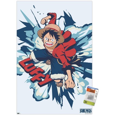 Trends International One Piece: Fishman Island - Brick Wall Grid Unframed Wall Poster Print Clear Push Pins Bundle 22.375" x 34"