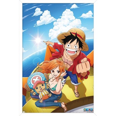 Trends International One Piece: Fishman Island - Luffy Punch Framed Wall Poster Prints White Framed Version 14.725" x 22.375"