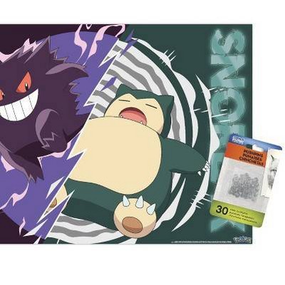 Trends International Pokémon - Gengar Snorlax Battle Unframed Wall Poster Print Clear Push Pins Bundle 14.725" x 22.375"