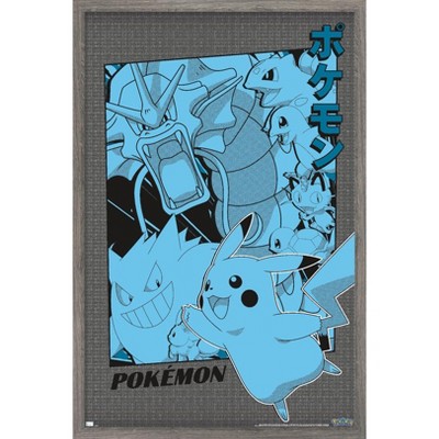Trends International Pokémon - Smiles Anime Framed Wall Poster Prints Barnwood Framed Version 14.725" x 22.375"