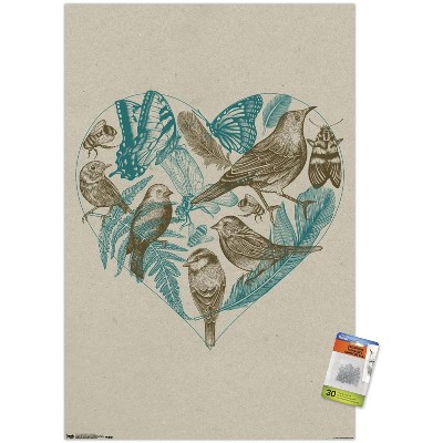 Trends International Rachel Caldwell - Feather Peace Unframed Wall Poster Print Clear Push Pins Bundle 22.375" x 34"