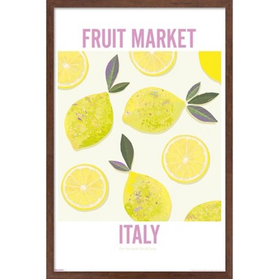 Trends International Reinders: Fruit Market - Limoncello Framed Wall Poster Prints Mahogany Framed Version 22.375" x 34"