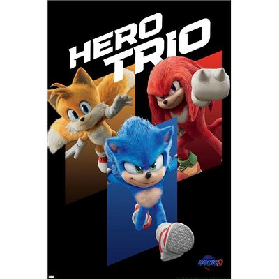 Trends International Sonic the Hedgehog 3 - Hero Trio Unframed Wall Poster Print Clear Push Pins Bundle 14.725" x 22.375"