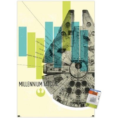 Trends International Star Wars: Global Art - Millennium Falcon Unframed Wall Poster Print Clear Push Pins Bundle 22.375" x 34"