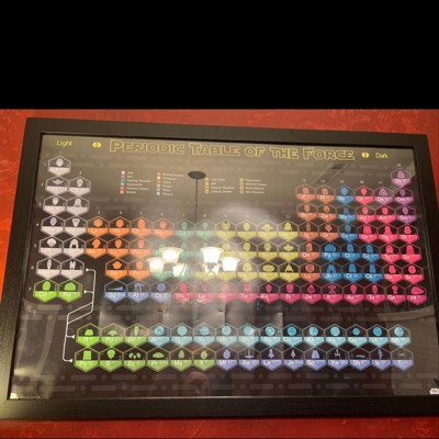 It's not a "periodic table" just a table of various Star Wars characters. Arrived bent/creased (it was shipped this way) and looks horrible framed, but husband insisted on keeping it as it would be a headache to return. Wish the sellers put a little more care into their shipping practices.
