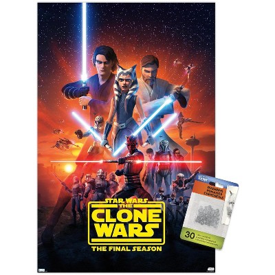 Trends International Star Wars: The Clone Wars - Ahsoka Tano Unframed Wall Poster Print Clear Push Pins Bundle 14.725" x 22.375"