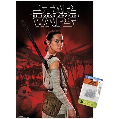 Trends International Star Wars: The Force Awakens - Rey Portrait Unframed Wall Poster Print Clear Push Pins Bundle 14.725" x 22.375"