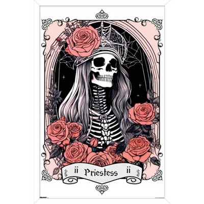 Trends International Tabz Jones - Skull and Roses Tarot Lovers Framed Wall Poster Prints White Framed Version 22.375" x 34"