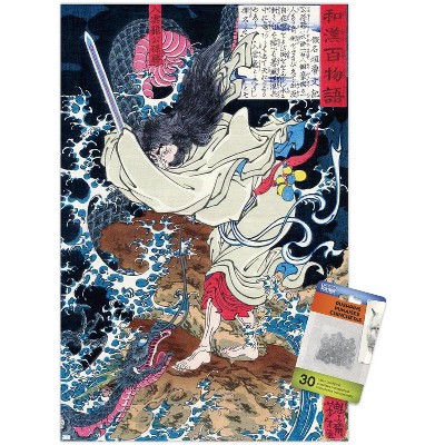 Trends International The Dragon in the Clouds by Tsukioka Yoshitoshi Framed Wall Poster Prints - 1 of 4