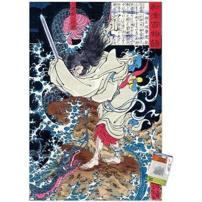 Trends International The Dragon in the Clouds by Tsukioka Yoshitoshi Unframed Wall Poster Print Clear Push Pins Bundle 22.375" x 34"