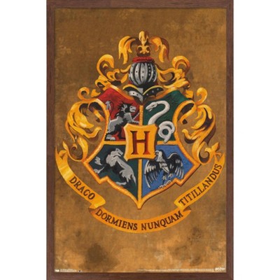 Trends International The Wizarding World: Harry Potter - Flower House Crest Framed Wall Poster Prints Mahogany Framed Version 22.375" x 34"