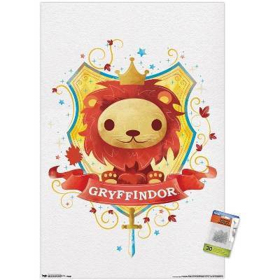 Trends International The Wizarding World: Harry Potter - Gryffindor Charm Unframed Wall Poster Print Clear Push Pins Bundle 22.375" x 34"