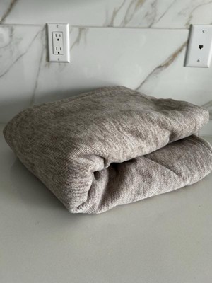 [This review was collected as part of a promotion.] While this blanket is not technically thick, it feels tightly woven with thicker material, so that it feels like it would keep me very warm. It’s not super soft, but it does feel good. It doesn’t feel itchy or scratchy. The color is very muted and a little spotty of a pattern, so it can blend or work well with a lot of decor and colors. A really light brown, but it’s really brown mixed with white. However it almost comes off as a taupe or gray. It can be used on a full size bed or a generous couch blanket that is easy to share.