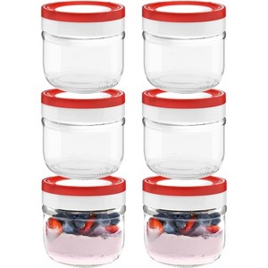 This set of 6 Tribello 10oz Mason Jars offers practical and stylish storage for your kitchen or workspace. Made from durable glass, these jars are perfect for storing preserves, spices, or craft supplies. Each jar features a vibrant red plastic lid with a red rubber seal, ensuring an airtight fit to keep contents fresh. Freezer and dishwasher safe, these versatile jars are easy to clean and maintain. Ideal for everyday use, they combine functionality with an attractive design.
