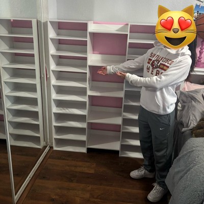 It was a challenge building the shelf. The instructions of this shelf were not clear, so building it was difficult. When bolting the screws in some of the boards would crack so we had to be extra cautious. It took just over 3 hours to put together, but at the end it was worth it. It is a beautiful shelf and my daughter can’t wait to organize her shoes in it. For size comparison she is 5’2 which is almost the size of the shelf.