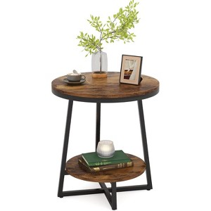 Product Name: Tribesigns 2-Tier Round Side Table with Storage Shelf, Rustic Brown