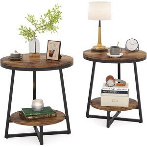 Product Name: Tribesigns 2-Tier Round Side Table with Storage Shelf, Rustic Brown