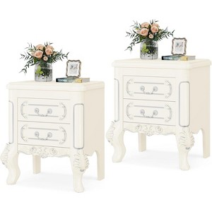 The fusion of a gentle cream-white finish and intricately carved wooden patterns adds an air of elegance and classical charm to this bedside cabinet. This bedside cabinet doubles as an end table/sofa side table/chairside table, the perfect choice for living rooms, bedrooms, and guest rooms.